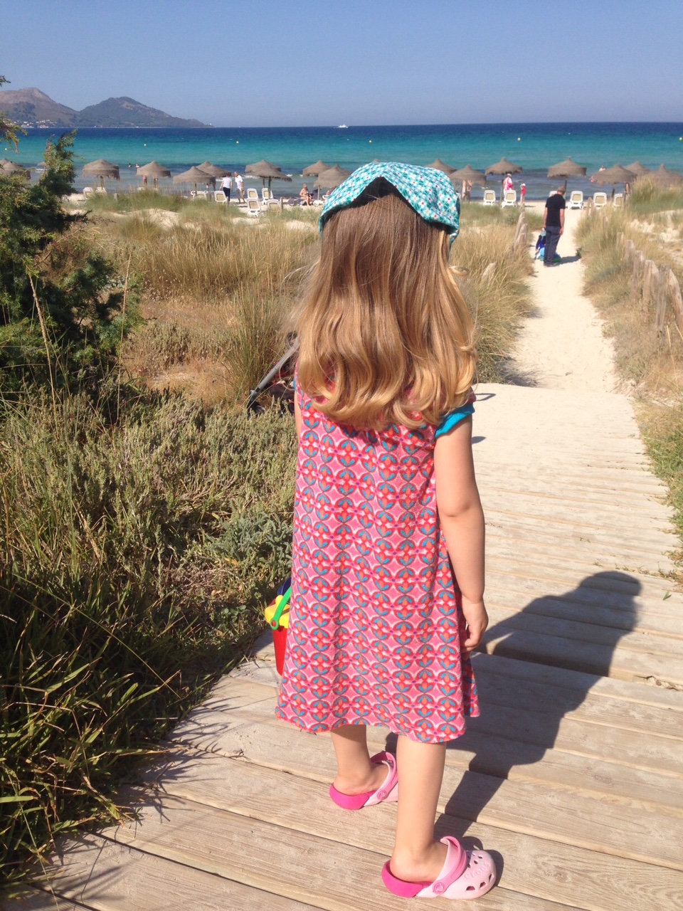 Schon wieder Strand? Ja, muss sein! Einmal noch. Ein allerletztes Mal – für dieses Jahr zumindest! Dann gibt’s wieder Bilder mit sattem Grün und heimischem Mauerwerk im Hintergrund. Auch hübsch, aber nicht halb so erholsam fürs Auge. Denn meist reicht ja allein der Blick aufs Meer, um ein klitzekleines bisschen runterzufahren im Alltagstrubel. Ich reiche Euch hiermit einen virtuellen Kokosmilchshake (eiskalt! mit Strohhalm in pink!), und freue mich, wenn ihr mich und das kleine Fräulein noch einmal ans Wasser begleitet…