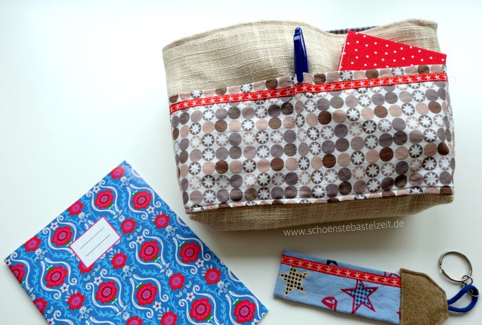 Und das ist mein Lieblingsteil aus dem Paket: mein neuer Taschenorganizer! Ihr wisst? So ein Ding, in das man all seinen Kram packen kann, den man in der Handtasche hat. Und wenn einem dann morgens kurz vor knapp einfällt, dass heute die blaue Tasche zum Outfit besser passt als die beige von gestern, dann nehmt ihr einfach den Taschenorganizer mit Eurem ganzen Kram und packt diesen um – fertisch! Erspart einem viel Gekruschtel und Umgepacke! GENIAL, Anna! So ein Organizer stand bei mir auf der Liste: „Will-ich-irgendwann-mal-für-mich-nähen!“ Aber wie das dann meist so ist: Solche Sachen fallen leider allzu oft hinten runter. Daher: VOLLTREFFER! Vor allem, weil Du wirklich sehr fleißig gelesen haben musst auf meinem Blog: Denn im Organizer steckte ein wunderschönes Jolijou-Heft für meinen Arbeitsalltag als Redakteurin, und im und am Organizer sind ganz viele Fächer – und mein Lieblingsfach ist das für den Stift! Endlich nicht mehr danach krutschteln! Komplett wird das Set mit einem Schlüsselanhänger – passend zu zwei Innentaschen des Organizers! Vielen Dank!