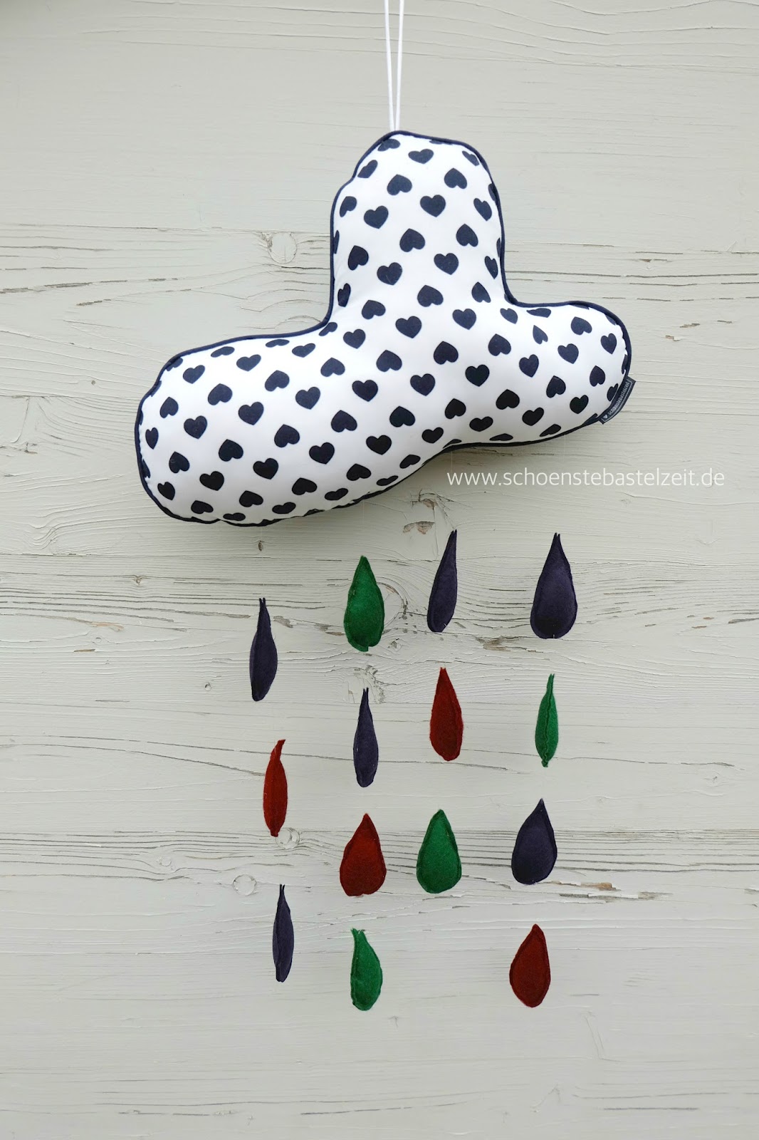 hübsch ist das Mobile geworden! Mag ja Wolken und Tropfen in der Kombination auch sehr gern. Und es wäre gerade das richtige für uns! Muss ich mir unbedingt merken …