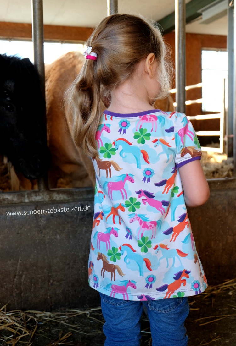 Bereits im Sommer habe ich diese süße Tunika aus dem fröhlichen Design „life is a ponyfarm“ von hamburgerliebe genäht. Ganz schlicht, ohne Tüddelkram. Denn das Design ist mit all seinen Tieren, Orden und dem Glücksklee bunt genug.