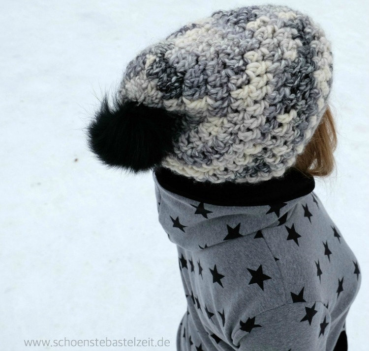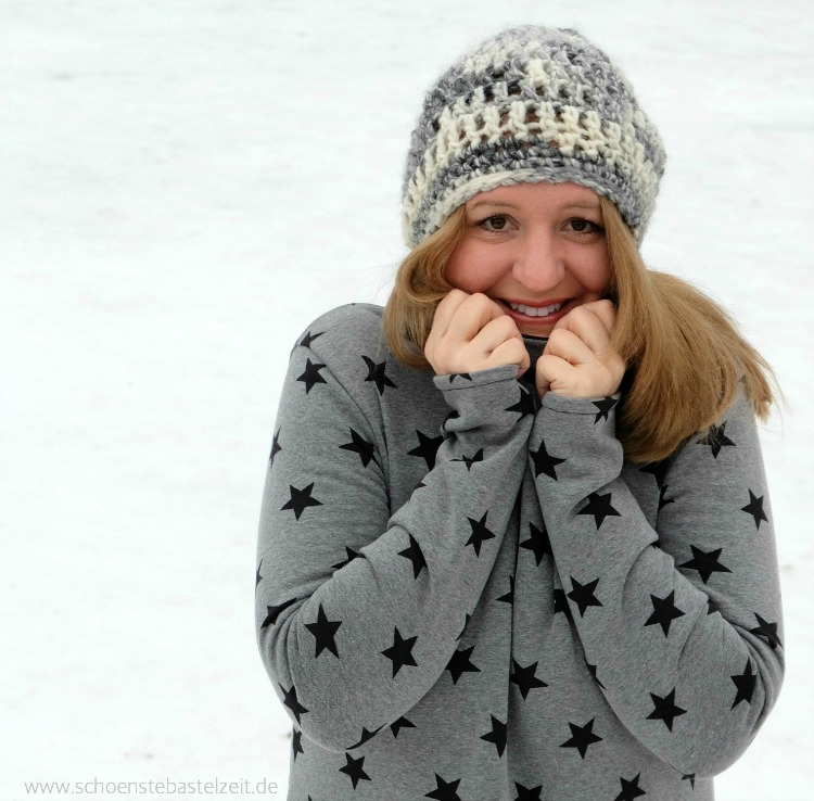 An der Kapuzen-Größe wurde beim Probenähen noch ein bisschen gefeilt. Anfangs saß sie doch sehr knapp. Jetzt ist sie so groß, dass man sie wirklich mal ins Gesicht ziehen kann, wenn der Winterwind um die Ecke pfeift.
