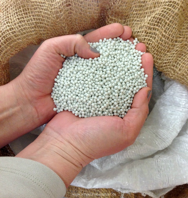 PET-Kügelchen: Aus ihnen wird Nähgarn – mittlerweile in 50 Farben.