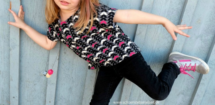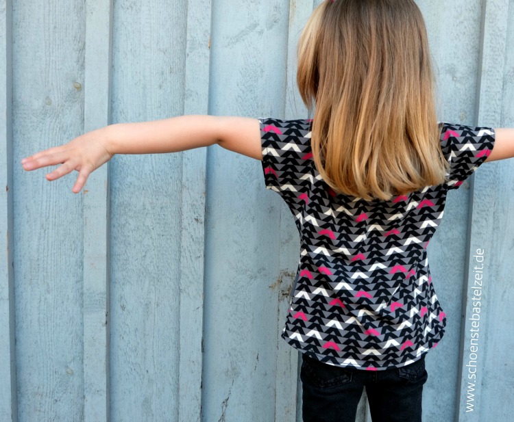 Hier könnt ihr die Schnittführung eigentlich ganz gut erkennen: Nach unten etwas ausgestellt, und auf der Rückseite ein leicht geschwungener Saum – das ist sowohl bei der Kinder- als auch bei der Erwachsenenversion so.
